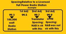 Two years later, the FCC opened an opportunity for the established big broadcasters to apply for what are called “FM Translators.” Translators primarily rebroadcast programming from the big broadcasters, religious broadcast networks, and in certain cases, NPR. FM translators channel placement is much more liberal than low-power radio in where they can fit on the FM band -- with even higher broadcast power than LPFM. NAB supported translators -- which used higher wattages wedged in narrow slots between commercial stations -- but stated LPFM was an interference threat at a lower wattage in wider slots on the band.